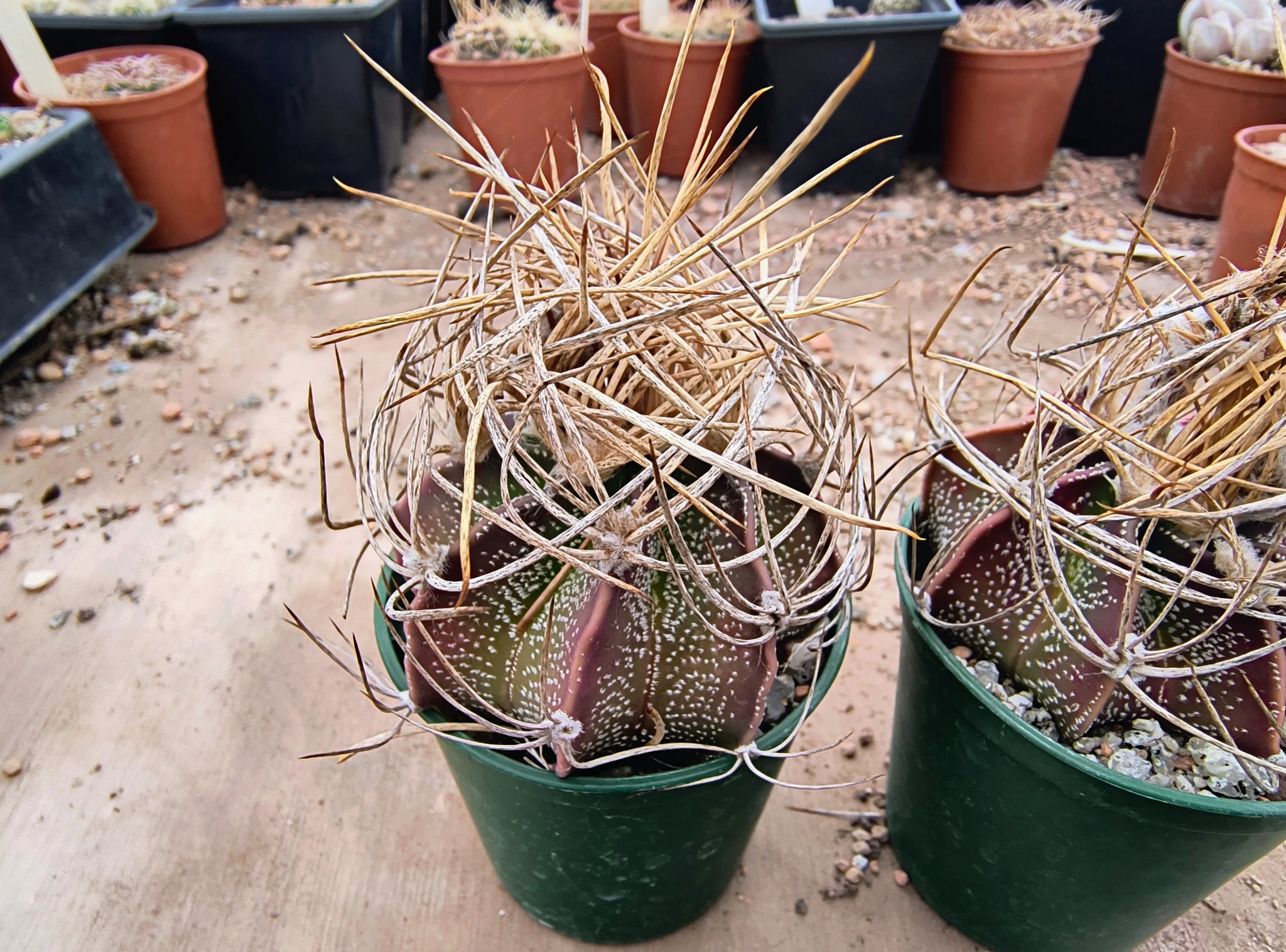 Plants in 6cm pots for scale.